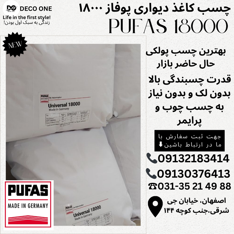 چسب کاغذ دیواری یورو 3000 محصول برند معتبر پوفاز آلمان، برای چسباندن انواع کاغذ دیواری های